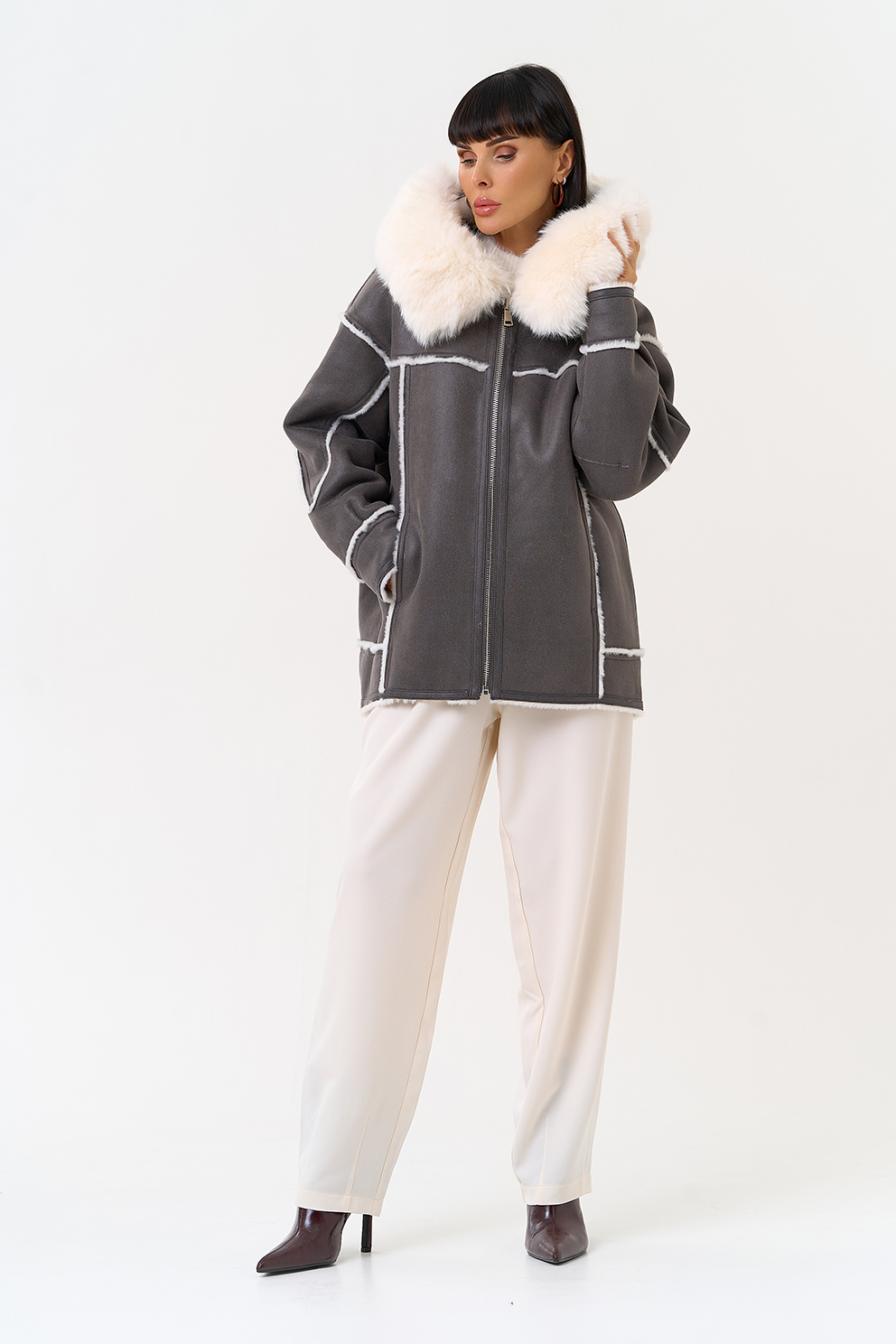 Отделка ворота - эко мех, цвет белый