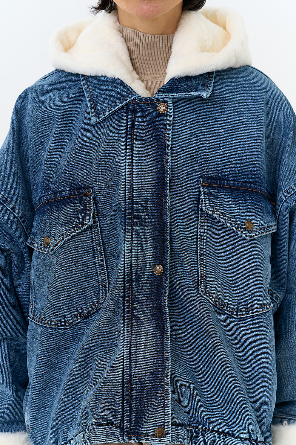 Крой воротника - съемный капюшон, отделка эко мех