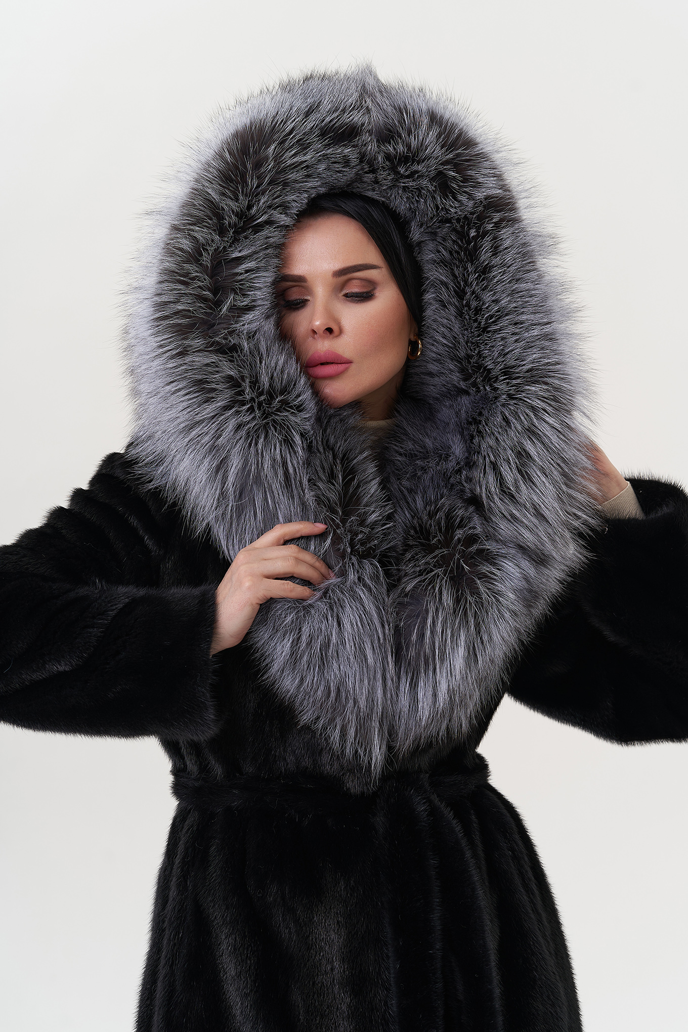 Тип ворота - капюшон, отделка - чернобурка