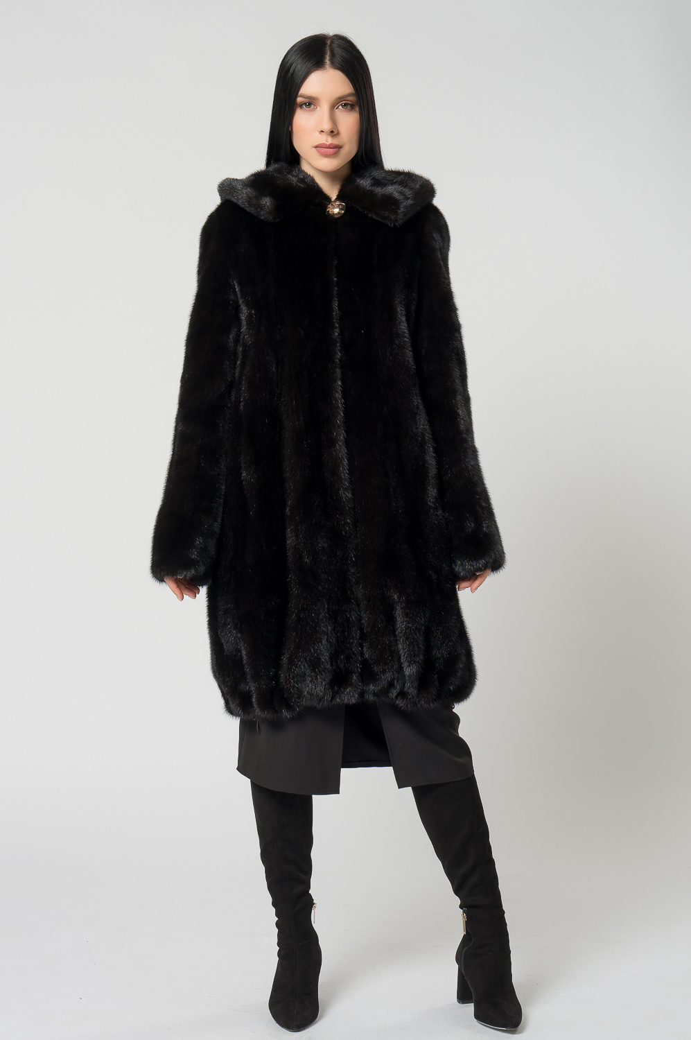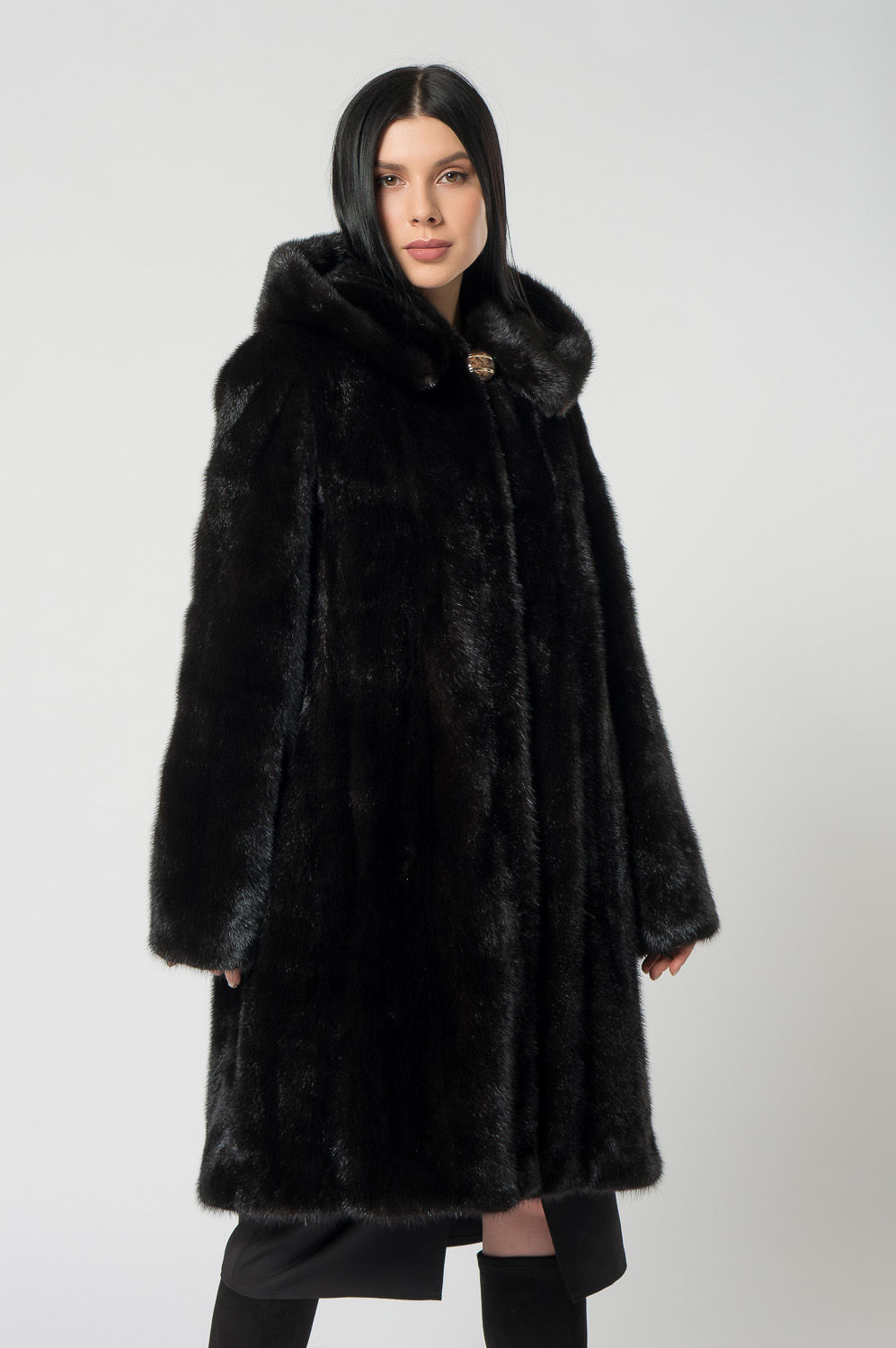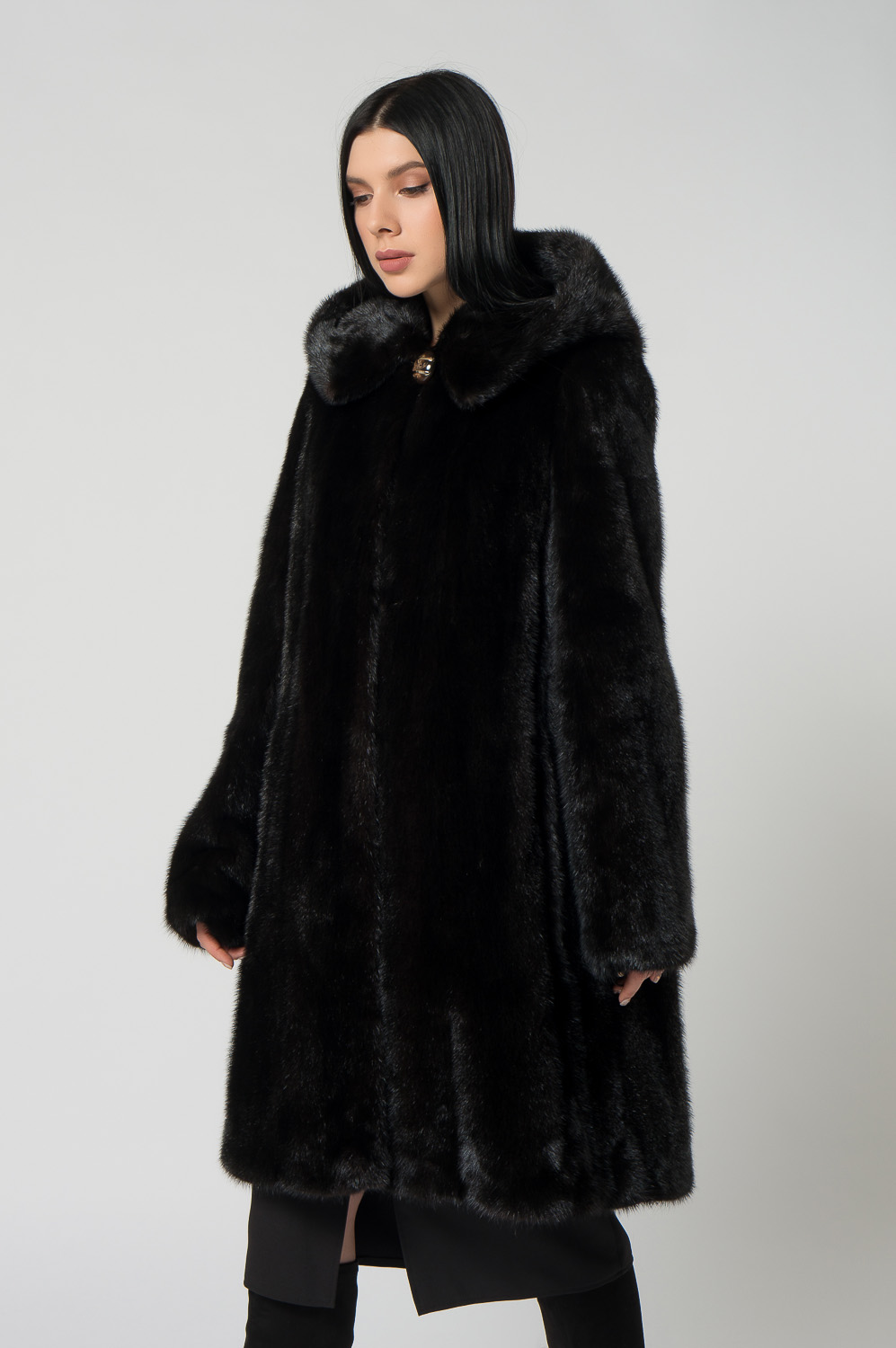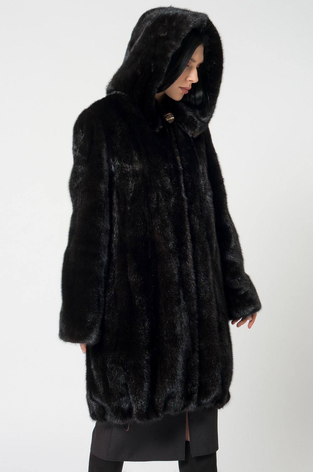 Шуба из норки с капюшоном, кулиска