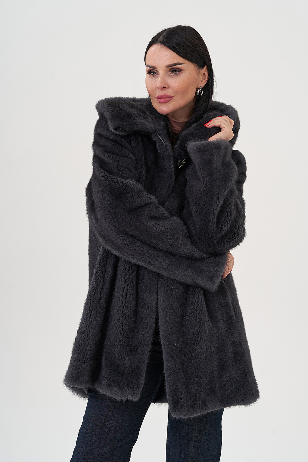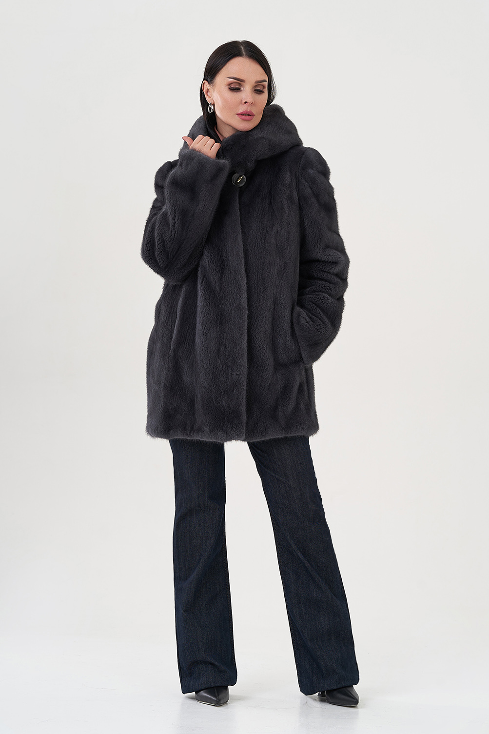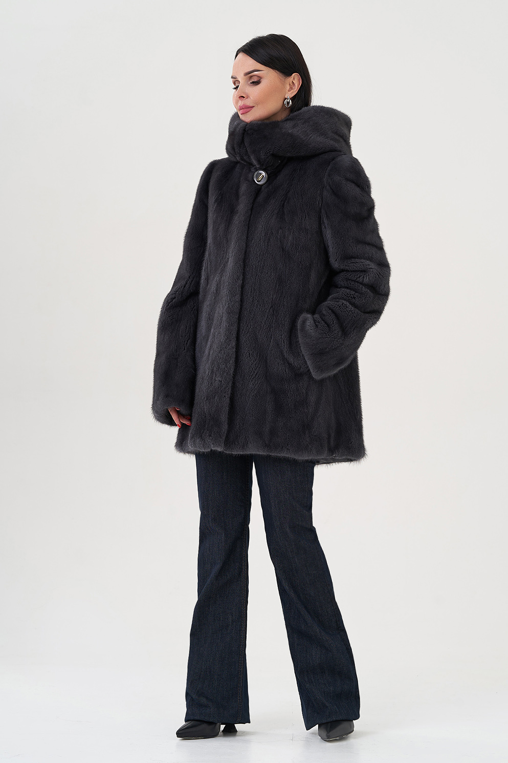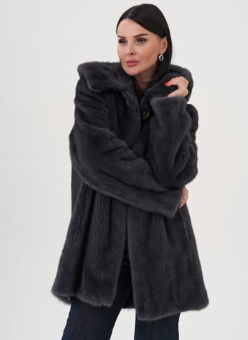 Шуба из норки с капюшоном